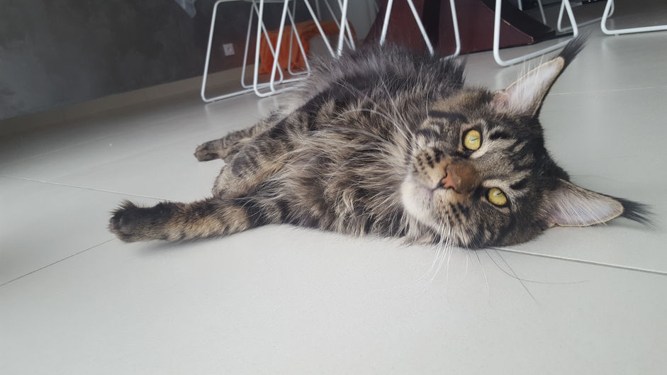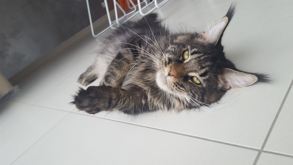 Je le trouve superbe avec sa grosse boite et ses beaux Lynx type! Et pour ne rien enlever au plaisir il a un beau gabarit : 11kg 300 ! Il est super gentil et a un miaulement vraiment étonnant!